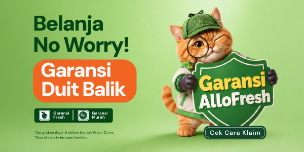 AlloFresh menjamin bahwa setiap produk fresh dan perishable dengan ikon Freshness Guaranteed yang kamu terima β€” sayur, buah, telur, tempe β€” harus dalam kondisi segar. Kalau nggak sesuai standar, kami ganti nilainya dalam bentuk FreshCoins langsung ke dompet kamu.